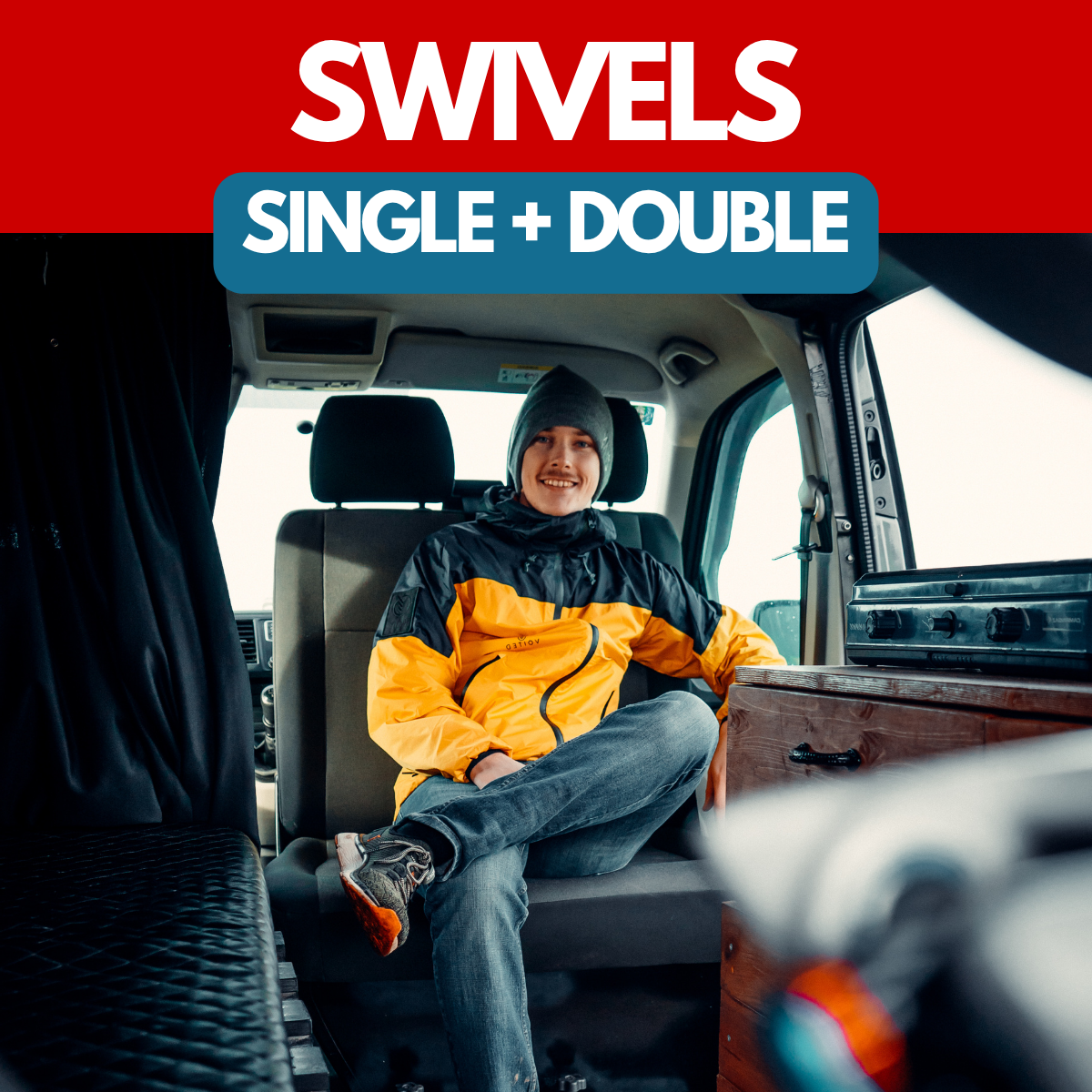 Transform your campervan living and dining space with our game changing double seat swivel base. Designed in-house, our exclusive design-protec...