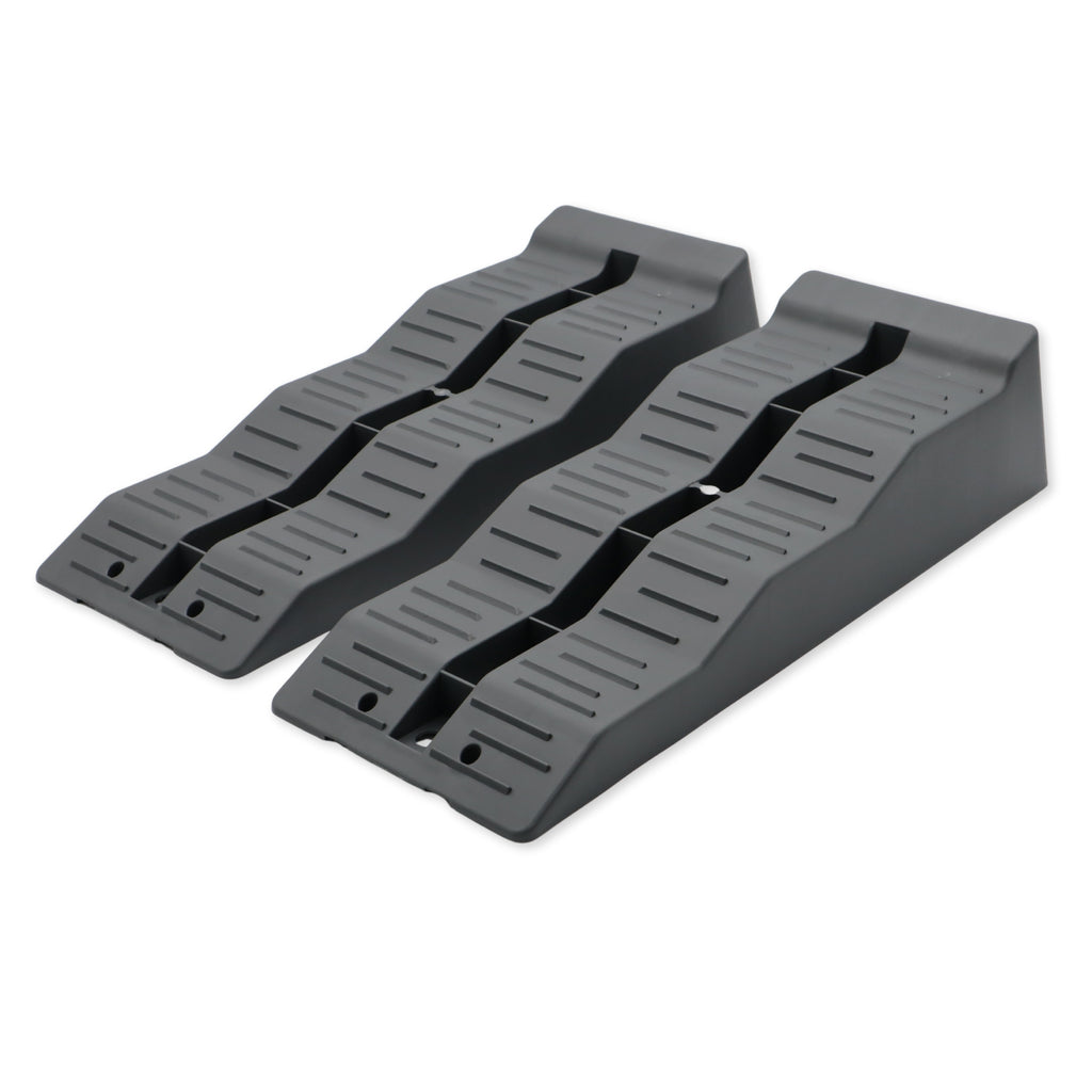Stabilisez votre camping-car, caravane ou van aménagé sur des emplacements irréguliers grâce à cette paire de rampes de nivellement robustes et légères. Le design à 3 niveaux vous permet d'ajuster la hauteur à 5 cm, 7 cm ou 10 cm pour obtenir un emplacement bien à niveau et confortable. La surface texturée antidérapante aide à maintenir les pneus en place, tandis que le HDPE résistant aux UV supporte les intempéries et l'usure. Fournies en paire avec un sac de transport pratique et très faciles à nettoyer après utilisation.